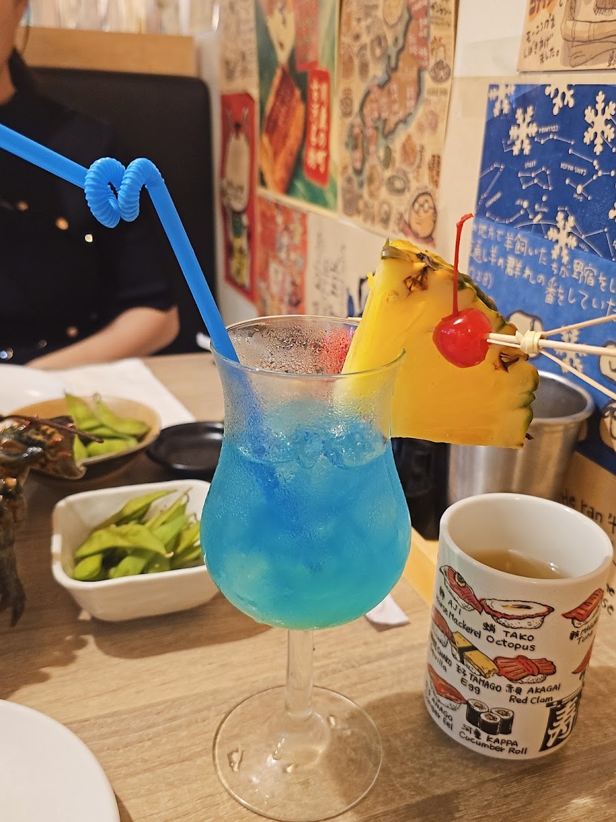 For a lighter option, the edamame-steamed young soybeans sprinkled with sea salt-makes for an ideal appetizer. It's a simple yet refreshing dish that pairs well with drinks and sets the tone for the rest of the meal. Speaking of drinks, Harumi Izakaya features the Blue Lagoon, a vibrant and refreshing cocktail that adds a splash of color and flavor to your dining experience. And, of course, no meal at an izakaya would be complete without a glass of chilled sake to complement the meal. Whether you're a sake connoisseur or a newcomer, the selection at Harumi Izakaya won’t disappoint.